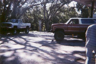 By the way, I'm the one with the trench coat on. As you can tell, we are into 4x4's. Well on that note. here is mine. The nasty brown one. Ugly isn't it? Well it is a mud truck. It has a built up 350 4 bolt main, a 3 inch body lift, a 6 inch suspension lift, with 44 inch tires. It goes where I want it to.. LOL