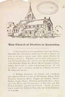 The second foundation stone to be laid in 1896 was that of St. Ethelwolds Church, on Holy Cross Day, 14th September, by Mrs. W. H. Gladstone. It had originally been suggested that the Church be built on Shotton Hill , where the building most recently occupied by Tesco stands. However, it was considered to be inconvenient, as it was also to serve Queensferry. Therefore a more central location was found.
