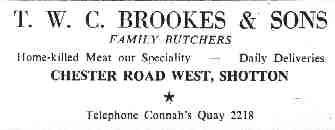 46 & 48 DeCORDOVA ALICE & FILCE Solicitors. Previously known as DeCordova and DeCordova, they have occupied the premises since 1970. Before this it was the National Provincial Bank. Before it was converted to the National Provincial Bank, this corner-site property was originally addressed as a private house in "Salisbury Street". It was here that William Morfin Butler set up his family home when he married Miss Vickers from Higher Shotton, ("Vickers Close", Hawarden). William Butler was a local entrepreneur of some standing with a boat building/repair business at Connahs Quay docks. His children were similarly gifted and included well-known Shotton characters; W S "Bill" Butler, (Windy Arbour Pre-Cast Concrete, House-building/Joinery/Boat repairs), Eric M Butler, House-builder, Joiner, T J "Tom" Butler, Electricians, Radio & TV Retailers, Electronic Services, Alice May "Mamie" Butler-Poole, Handicraft Goods Retailer ("The Alhambra Shop"), Billiard Hall/Ice Cream Parlour ("The Ideal")