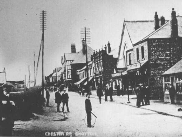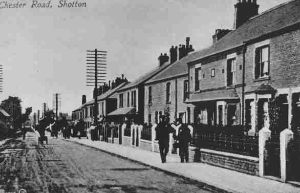 Chester Road West, Shotton in c.1920 (left) and 1960 (right)