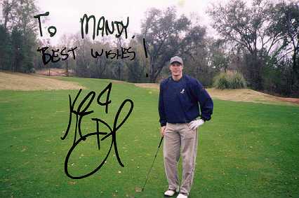 Kirk pretending to be Tiger Woods at the 1998 Charity Golf Tournament.