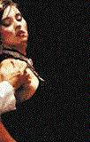 | This dance is in the typical style of the pretentious Argentine middle class. More than a tango, it is a playful exaggeration. By this time, the street tough of the turn of the century known as the compadron, had been replaced by the compadrito - a middle class imitation. The narcissistic gestures of the male dancer and his exaggerated "macho" act were part of the role but also underlined his obsessive insecurity. She, in turn, plays her coquette role to the hilt. |