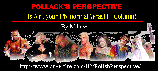 So in closing with these thoughts I think that WCW will continue to suck until some new writer's come aboard. WCW has the talent when you take a look at it and all it needs is someone to push them to greatness. Vince Russo and Eric Bitchoff are not the men to take them their because all they mostly want is their own asses to be on TV so they can get more and more famous, even though people think that they are complete losers and the such now, its a shame they feel like their Gods (hey we the wrestling columnists are the only ones that should feel like were God's). No matter what shakes up in WCW the programming will not get any better and nothing new will happen. So in this I have a Final Solution, no not the one where we go off and kill a bunch of people because of their beliefs...though it would be kind of fun with Easy E. and Vince Russo, but rather these two simple words that hold so much emotion: Death Matches.