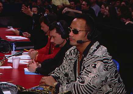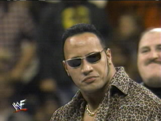 Your lookin at the Rock like your half retarded, ya better know your role and shut your damn mouth before the rock checks your ass into the Smackdown Hotel and slaps the taste out of your mouth and just so you know with ever stay at the Smackdown Hotel you get a complimentary fist in your mouth and foot in your ass