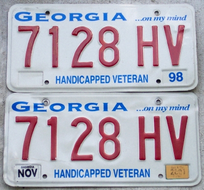 Unlike most plates in GA, these are issued in pairs. The rear plate is the only one that gets stickers.