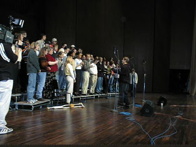 BRIAN CONDUCTING THE CHORUS FOR THE SONG HE MADE FOR HIS MOTHER CALLED "THE PERFECT FAN"