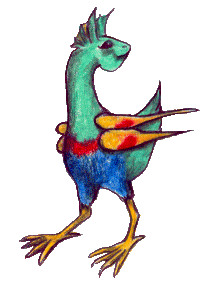 You stand there a moment, gaping. Your mind whirls into action as you digest what the bird-creature just said. Hoping that it has told you it's name, you open your mouth to speak.