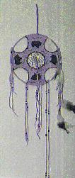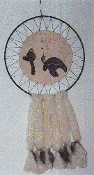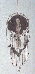 THE SPIRIT OF THE BUFFALO IS HONORED IN THESE HAND DRAWN FETISHES ON TAN LEATHER SUEDE. IT DISPLAYS A HAND STRUNG DREAM WEB IN THE CENTER OF THE SHIELD IN BLACK ARTIFICIAL SENEW WITH MANY HAND CUT LEATHER FRINGES. THIS IMPRESSIVE PIECE IS FINISHED WITH LEGAL EAGLE FLUFFS AND IVORY AND BLACK COLORED CROW BEADS.