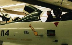 (left) Joe IV sitting in cockpit of one of the numerous full sized planes in Museum