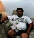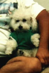 In 1996 for Kathie's Birthday we decided to adopt another dog. We came upon this little guy who was saved from the pound by an animal adoption agency showing their dogs in a local pet store. No one wanted to adopt this sad looking pup, because he was handicapped, with a bum leg. While a stray he somehow broke his right hind leg, that healed frozen in place and walked on 3 legs. We took him home & loved him, Joey named him Pierre's cousin Vinnie- since he was a maltese that made him an italian dog! After two months Vinnie had surgery to repair his leg, & in two more months he was using the leg as if it was never broken. Needless to say he has become so spoiled!!