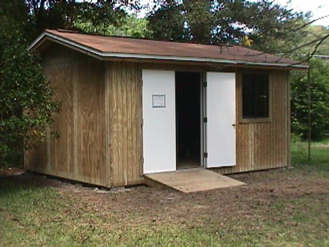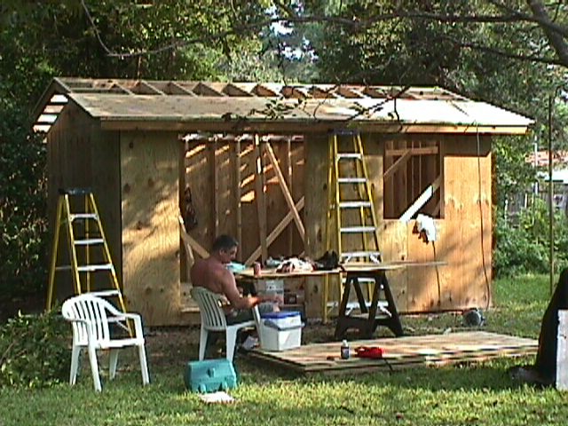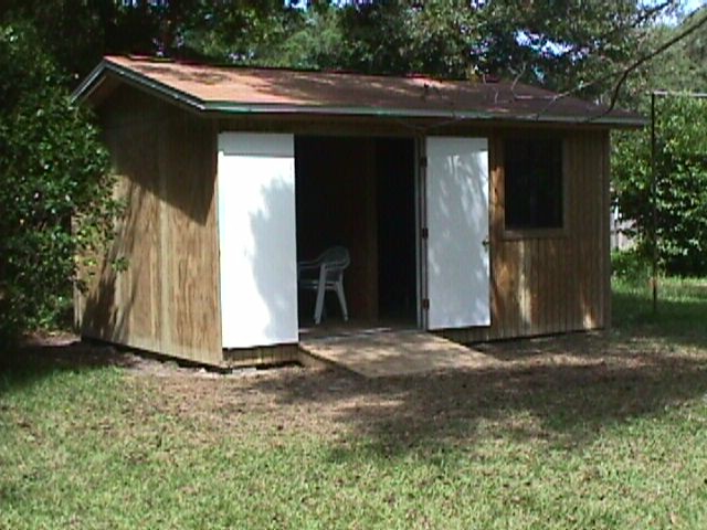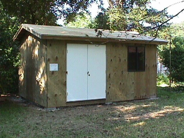 Inspection time – notice that the Permit is now posted on the side of the shed. This was for the “Nail and Strap Inspection.” Here in Bay county the inspector wants to look at the hurricane clips and see how the deck and siding are nailed on before anything is covered. We passed.