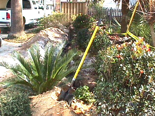 I decided that the only practical thing to do with the power service drop was to put it underground. That was necessary because existing trees made in impractical to go over head to a place on the existing roof. The easy way is to have the power company come in and just do it -- but where we wanted to put the underground line was an old established shrub bed. They would have brought in a back hoe and torn up the whole thing. I elected to dig the ditch by hand, myself, and lay in the conduit and then have the power company pull their wire through. When he saw the ditch, one neighbor ask if I was going to bury a snake. By two weeks after the ditch was finished you couldn't tell it was there.