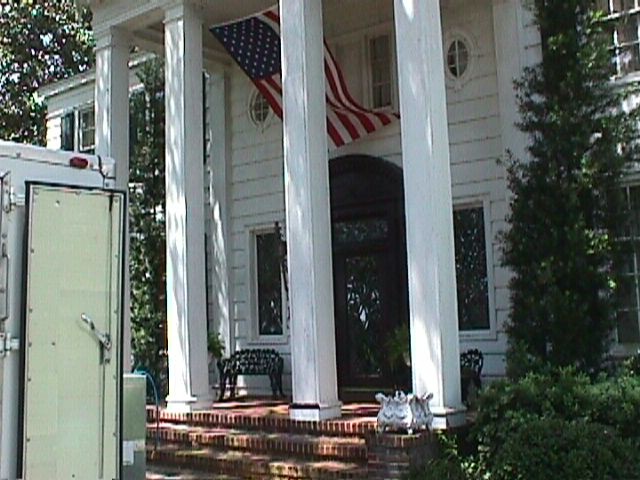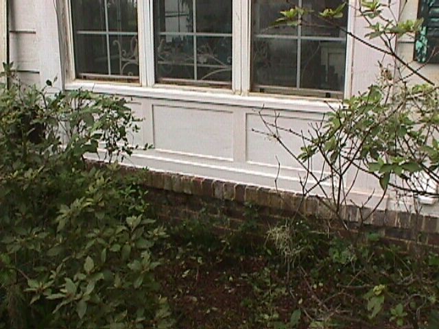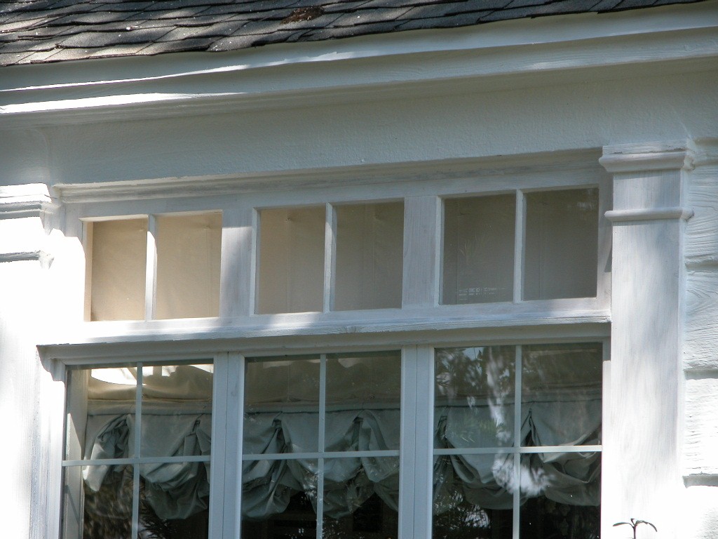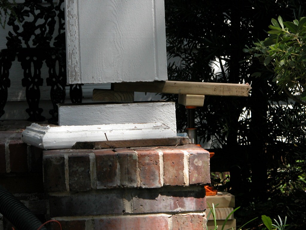 Column Left March. This is the old house on Beach Drive (circa 1930) where I’ve been replacing some rotten wood, prior to painting. When I first looked at the job the owner said that he wanted the old caulk stripped out of the columns and then re-caulk them. When I got around to starting on them, it got a little more complicated than that. This is the first photo I took (with the old camera) and it shows where I have pulled out the front part of one base. These columns are about 17'5" from the step to the underside of the beam that sits on them. The actual column is about 16' and the rest is a concrete pedestal, then a base made up of two inch thick rounded piece and a 3/4" fluted piece, mitered at the corners and a square piece on the top (I don’t know how it was made). I found out after I got up there that the little molding near the top is actually let into the column about a quarter inch.