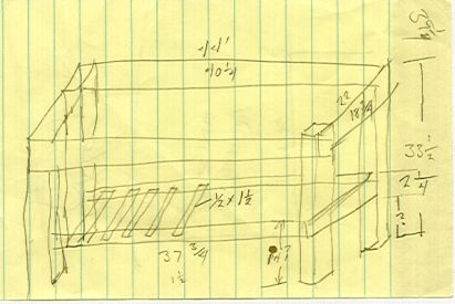 This is a sketch I made of the Vanity Table for the half bath (that is the door to the right of the little railing - above). We wanted to do something different and had seen a picture in a magazine that we liked a lot. Anyway this is how it got started. I found some Mahogany (pattern grade) and one of the pieces was 3" X 6" and that would make the legs. It took a while to get it all together – I am pretty slow at these sort of things (takes a lot of time to think it through).