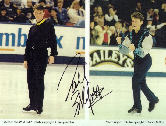 Nicole Moore--my co-conspirator and the administrator of Skating Fan Forum--obtained this special autograph at my request, after Improv-Ice on December 5, 2000. It was presented as a holiday gift for the fans who visit this site. (The photo is courtesy of J. Barry Mittan; visit his website, or see more of his Todd photos here.)