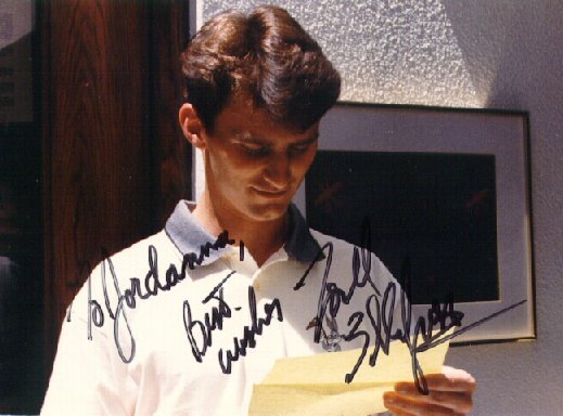 This is the first autograph of Todd's I received--a surprise gift from my good friend Sugar, after she caught up with Todd at the 1998 World Pros. The photo of Close Every Door was taken earlier that year, at the 1998 U.S. Pros by her husband, Hiroaki. You can see more of his photos from that event here.