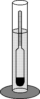Hydrometer - A hydrometer measures the relative specific gravity between pure water and water with sugar dissolved in it. The hydrometer is used to gauge fermentation by measuring one aspect of it, attenuation. Attenuation is the conversion of sugar to ethanol by the yeast. Water has a specific gravity of 1.000. Beers typically have a final gravity between 1.015 and 1.005. Champagnes and meads can have gravities less than 1.000, because of the large percentage of ethyl alcohol, which is less than 1. By the way, hydrometer readings are standardized to 59F, since liquid gravity (density) is dependent on temperature. Temperature correction tables are usually sold with a hydrometer or are available from Chemistry Handbooks (ex. CRCs).