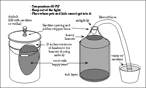Put the fermenter in a protected area like the bathtub. If foam escapes it will run down the drain and is easy to clean. The temperature here is usually about the most stable in the house. Animals and small children are fascinated by the smell and noises from the airlock, so keep them away.The airlock should be bubbling in twelve hours. Maintain a consistent temperature if possible. A fluctuating temperature strains the yeast and could impair fermentation. If the temperature drops overnight and the bubbling stops, simply move it to a warmer room and it should pick up again. The yeast does not die, it merely goes dormant. You may need to swirl the fermenter to rouse the yeast off the bottom, but do not shake the fermenter at this stage though.