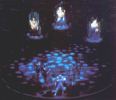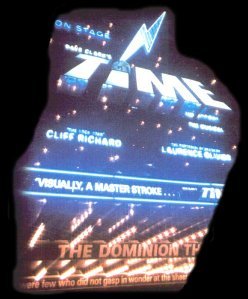 Time tells the story of the Rock Star named Chris Wilder Cliff Richard, later by David Cassidy) who has been transported, with backup singers Louise, Babs and Carol, from his concert on Earth to the High Court of the Universe. There they face three other-worldly judges to defend the Earth in the case of the Time Lord vs. the people of the planet Earth. From the programme: "...Now that man is venturing to the stars and has already walked on the Moon, 'Melchisedic', The Time Lord, has decided that the time has come to examine the Earth's people to determine whether they shall be an asset or a threat to Universal peace." Wilder convinces the judges that the Earth is worth sparing and he is transported back to his concert at the same time that he left. (Unbelievable, you say? It gets better.) Laurence Olivier portrayed a holographic floating head named Akash (his role was filmed) who is a pseudo-narrator throughout the show. |