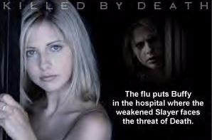 BUFFY'S SLAYING SKILLS are dulled by a nasty strain of flu that has half the school out sick. Severely weakened by a skirmish with Angel, a delirious and nearly unconsciouss Buffy is taken to the emergency room. Afraid of hospitals since her cousin Celia died in one as a child, Buffy is anxious to leave when her recuperation is further hampered by the appearance of a ghastly bogeyman called Kindestod, who feasts on sick children–the only people, besides the fever-addled Buffy, who are able to see him. Realizing that is was the Kindestod who killed Celia, Buffy intentionally swallows a dose of the virus needed to induce the feverish state that allows her to face the otherwise intangible monster before he can murder again.