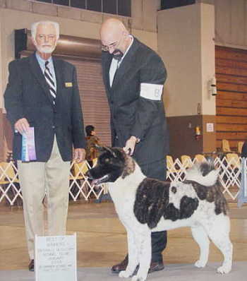 This is CASANOVA aka NOVA....CHAMPION MIKIROS LADY KILLER OF WINDOM (CH MIKIROS MAGICAL FLASHBACK X CH WINDOM MICOBI SUMMER SUNSHINE) CH Nova is part of the next generation here at Mikiros Akitas carrying on the traditions set forth by his sire and grandsire. NEW Photos and pedigree coming soon. Here is Nova at 13 months winning his first points in Greenville Mississippi! Nova is now a finished AKC Champion! CH NOVA is available at stud for more information contact Mike. Stay tuned for new CH pics!