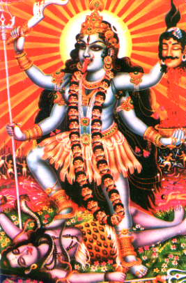 We have talked on our other sites about the correspondences between Yemaya and Ochun and the Egyptian dieties. We tend to think that there are correspondences between the Orishas and the Hindu gods and goddesses, also. Although there is not much evidence pointing to this, historically, we believe there is a connection. For example, it is believed that the first humans from Africa traveled somehow to Australia, as evidenced by the racial typing of skin color. Who can say that they did not also reach the Indian subcontinent and mix with the indigenous races there. Comparatively speaking, the demi-gods of the Hindus can be easily compared to the Orishas and their function is the same. Oya corresponds to Kali, while Laksmi corresponds to Ochun. Indra the fire god corresponds to Chango. Vishnu corresponds to Olodumare while Brahma corresponds to Obatala. Of course this is just speculation on our part and we make no claims to have any sort of scientific proof. But then again, spiritual proof is not always scientific. Kali's black color and the fact that she is a warrior goddess with a necklace of skulls tend to make us identify her with Oya. What do you think? We welcome your comments.