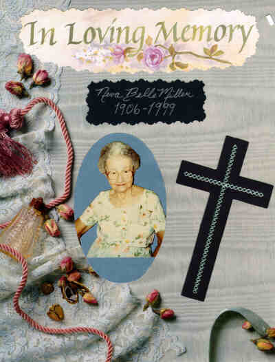 This is the opening page of my In Loving Memory album of my recently departed Grandma Miller. To view it, or any of the others on this page larger and in more detail, just click on them. I also have descriptions of the materials and techniques used to create the layout on the detail pages. I'm not sure right now why the pix on this page are coming out so large compared to my other layouts page, but I apologize. I swear I used the same technique to create all of them!