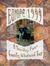 These two pages are from the second day of our trip, still in Germany. The feature I like most about these pages is the border style (you may have to click on them and go to the full-page versions to see it clearly). I used a filmstrip punch all the way around the edges, and then threaded a thin blue satin ribbon through the holes. It took quite a while, but the rich effect it achieved was worth it.