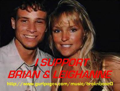 Alright..I know you're all expecting me to bash Leighanne like there was no tomorrow...but haHA, you are wrong wrong wrong! You jump to conclusions about me! I like Leighanne. I think she's pretty and everyone should just BACK OFF! Brian's in love w/ her...which sucks, but ya know...nothing I can do about it. More power to ya! Oh and umm...1st childs name should be Jessica. That'd be sweet.
