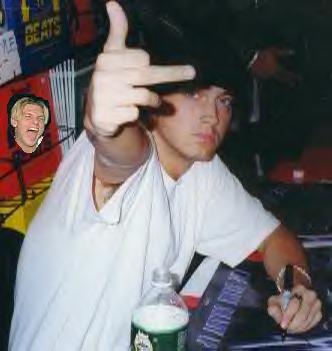 There's Nick in the background singing along. That day was the day Nick finally met Eminem. That day was the turning point for both of them. Eminem and Nick were practically inseperable after that. Eminem made cameos at Backstreet Boy concerts and Nick did the same for Em. Days when the two couldn't be together were few but when a day like that did roll around, the two did everything they could to feel each other's presence with them. It was rumored Nick kept pictures of Eminem in his wallet and looked at them constantly. Eminem also did what he had to do. He very rarely left the house without his very favorite picture of Nick. It was Nick on the cover of Big Bopper.