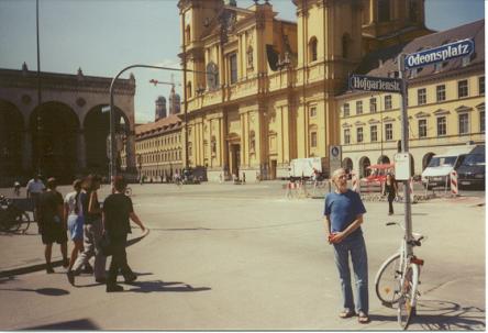 Paul and Mike have come here to find what remains of the Odeon Theater, the place where Ulrichs gave the first public speech in defense of same-sex love. That was on August 29, 1867, the day after Ulrichs' 42nd birthday. It is here in a building on a square now called Odeonsplatz that the words that would forever change the Gay rights movement were first spoken. It seems fitting that now the Munich annual Gay pride parade ends in this historic place.