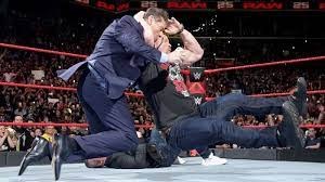 Austin puts the diploma back in the envelope as Vince extends his hand for a handshake. Austin takes Vince's hand...and, yep, hits the Stunner.