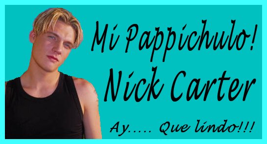 Also, please feel free to e-mail me with comments or idea's about how to make the sight better. And, I'm a lover of reading fan fic as well as writing it, so if you have a Nick story I would love to read it. E-mail me with your story or the links to your sight. Thanks again for visiting "Me Pappichulo, Nick Carter" and remember K.T.B.S.P.A.