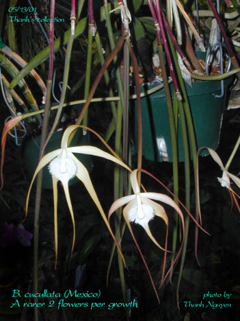| Growing | A very hardy plant. Grow and flower well in warm to intermediate conditions. Most of my cucullatas are mounted but I have one in pot that grows also well in well drained mix. |