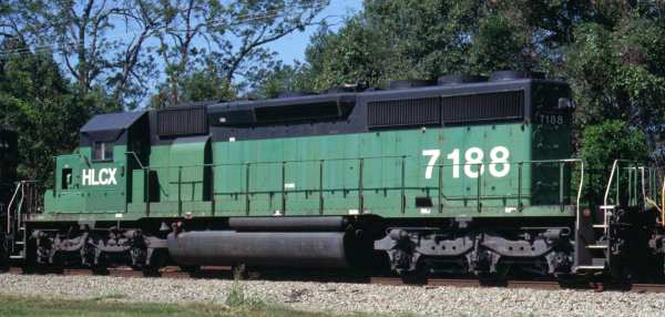 HLCX 7188, SD40-2 in its Burlington Northern scheme are the newest