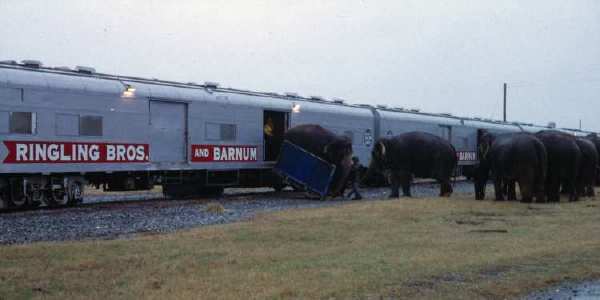 Rough day for the pachyderm: after performing, walking over a mile