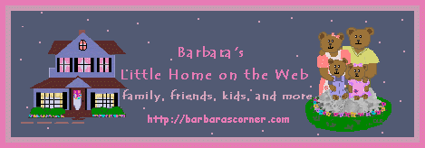 Table of Contents About Me Adopted Bears Awards Banner Exchange Birthday Girl Cross Stitch Favorite Website Games Graphic Artists Health Tips Home Just Cookies Kids Korner Musicbox My Birthday Page Webring Win My Award 101 Ways