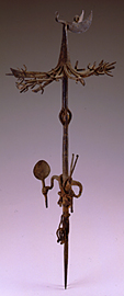 Above you see what is called in Africa an Opa Osain. This metal representation of Osain in found in yards of "Osainistas" or men who have received Osain and indicates to the public their profession. In Africa there are so many herbs and plants that are used in healing, that only someone trained can competently perform the function. The plants and herbs of Osain have their purely medicinal value as well as their magical value. The Osainista knows how to correctly gather the herbs and plants so that the ache remains with the plant or herb. Some plants have to be gathered at certain times of the day or night. Certain plants have to have certain prayers said to them and certain offerings made in order to correctly work. It is truly a science, the knowledge that the Osainistas have mastered. Continue on to our other pages to learn more about Osain.