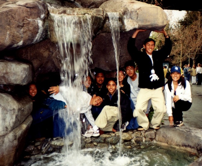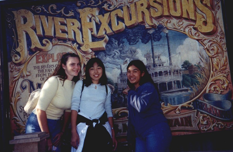 Niki smiles right before being drenched on the Rapids. She, Ross, and Chun got busted for taking their shoes of on the ride. Dorks.
