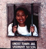 Ran stole some hats, so they threw her in Ghost Town jail.
