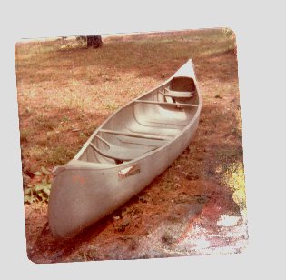 "Tippee Kanoo"......my 25 year old canoe. It is a healthy 65 pounds, and 15 feet long. Not made for speed, but endurance it has. |