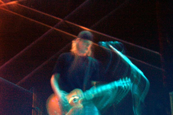Jesse and I shoved through to crowd, our destiny: the pit. Krista was right behind us. Well, there was a negative side to all this... the voilence took place over not grass, but unforgiving pavement. We learned this crucial fact the hard way (sacraficing out elbows and knees) and decided to aviod the most violent sectors of the crowd. Naturally, we were completely unsuccessful for bands like Flaw, when thier heavy, crunching rythems caused the ENTIRE crowd to erupt into violence. I'm talking about a pit that is so enourmous, it fails to maintain the traditional circular shape and becomes this peanut-hourglass sort of a thing mutant riot.