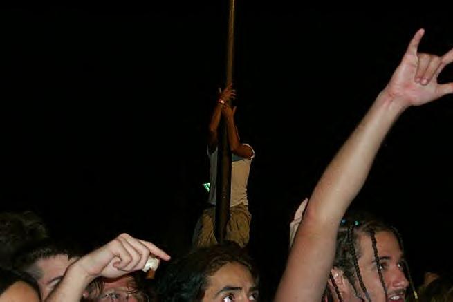 We were then informed by some kind hearted (yet battered) people that the Ampitheatre would not open until roughly 4pm, a distant 6.5 hours away. I didn't understand. Where was the ear splitting music comming from? it was time to investigate. We ran through rows of booths and clusters of people, instinctively following our ears. The landscape opened up to a tremendous flat plain, where we were breath taken by an enormous crowd in front of a massive Halloweenie Roast-style stage, just Ripping it UP .
