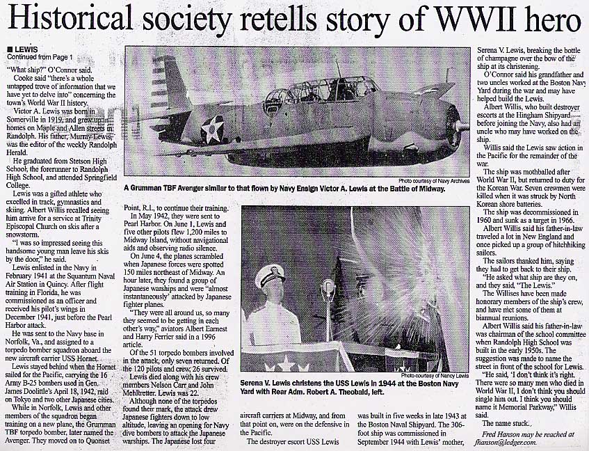 Ensign Lewis was reported as missing in action on June 4th 1942 during the Battle of Midway.