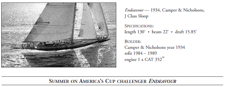 I decided to apply to work on the Endeavour even though my sailing friends discouraged me from that. This group of friends and I had just witnessed the challenge of two J's sailing with the “old guard” and the current “Who’s Who” from past years of the America’s Cup.
