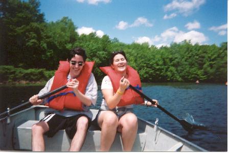Beth and I trying to row a boat.