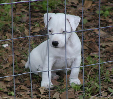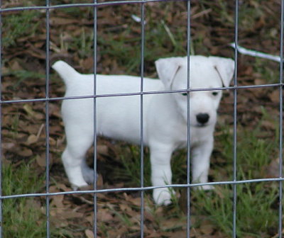 Our newest addition to our Jack Russell Terriers. Biscuit was born 2-08-01. What a handsome little guy. Solid white, with the
