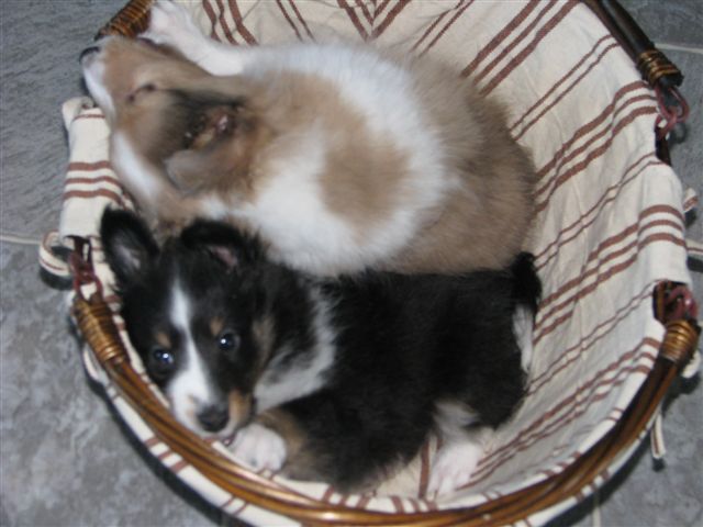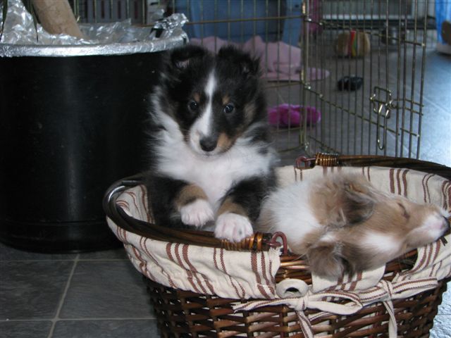 One Tri girl, 2 sable girls, 1 sable merle girl, 1 sable merle boy