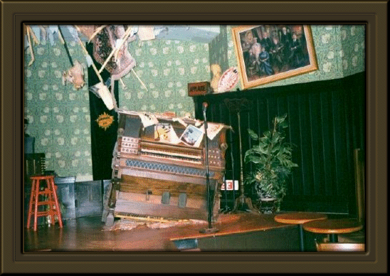 The library is another room where frequent shows are presented; one of the central characters is Fingers, the piano. Fingers kind of fell through the ceiling from the floor above, but he still plays ok. Some day maybe they'll fix the ceiling and floor, but for now there's too much going on to waste time on housekeeping. Look for pictures from some of the shows in a month or two.
