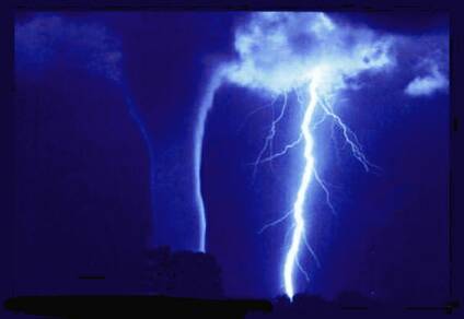 Lightning illuminated waterspout on Lake Okeechobee